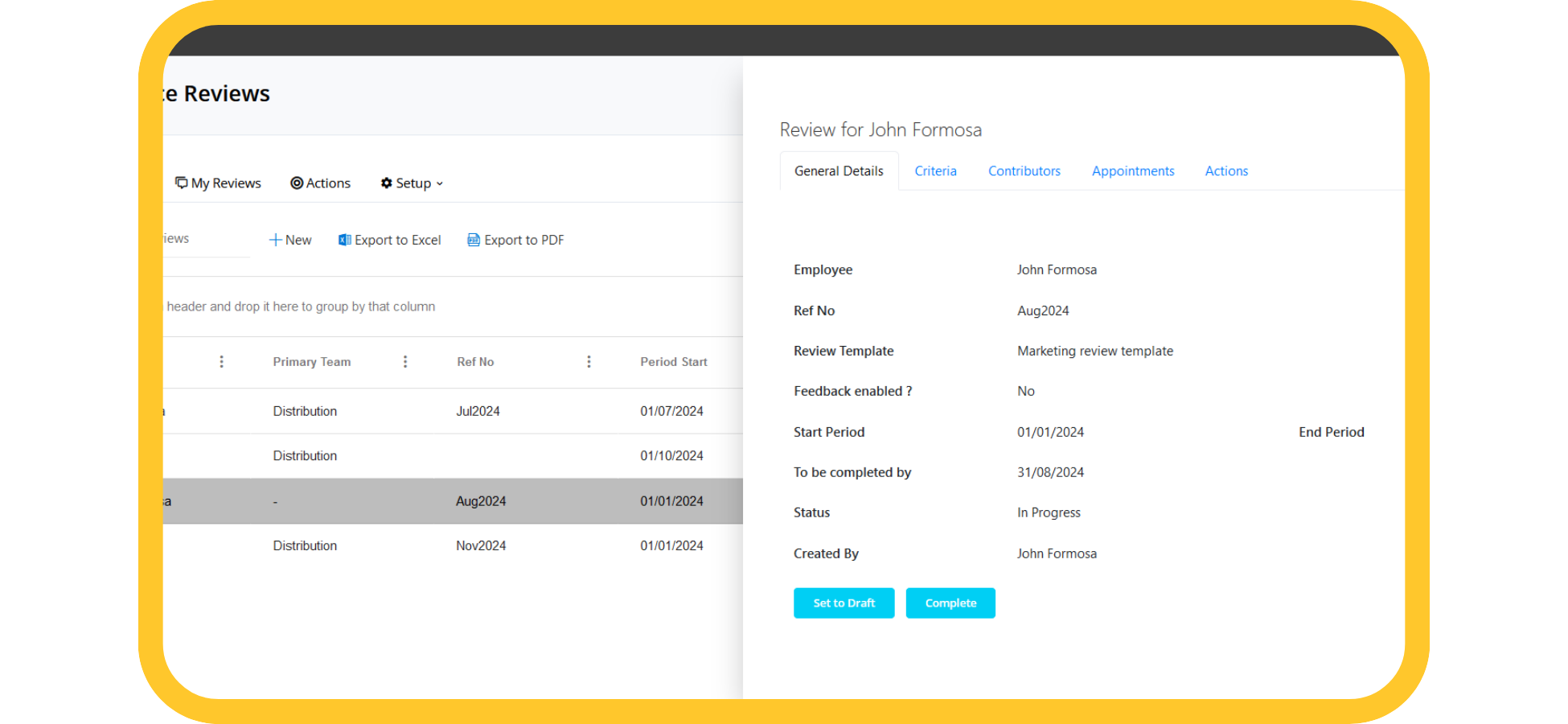 All of the above sounds straightforward — but trying to manage consistent, structured, two‑way performance reviews through spreadsheets, emails, and shared folders rarely works in practice.