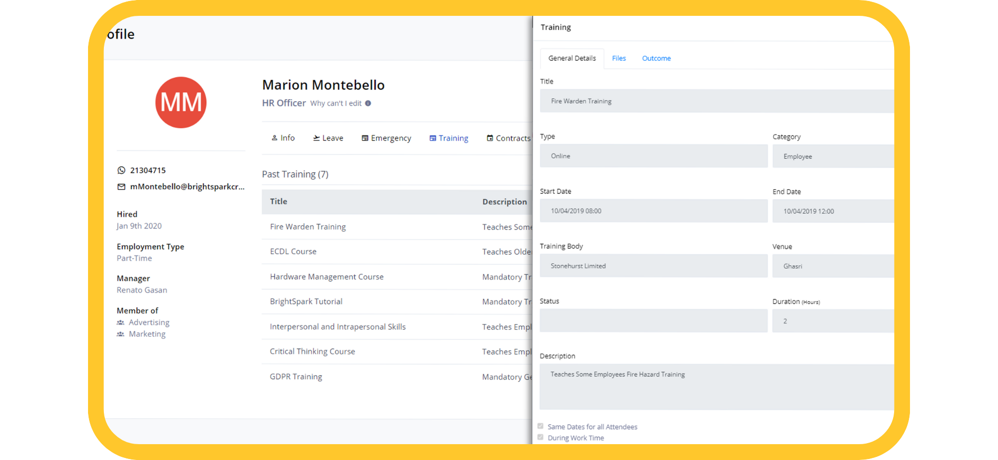 • Verifiable Outcomes: Every training entry should include an Attendance Status (Present, Absent, or Planned) and a description field for outcomes. This creates a permanent, audit-ready “Paper Trail of Competence.”